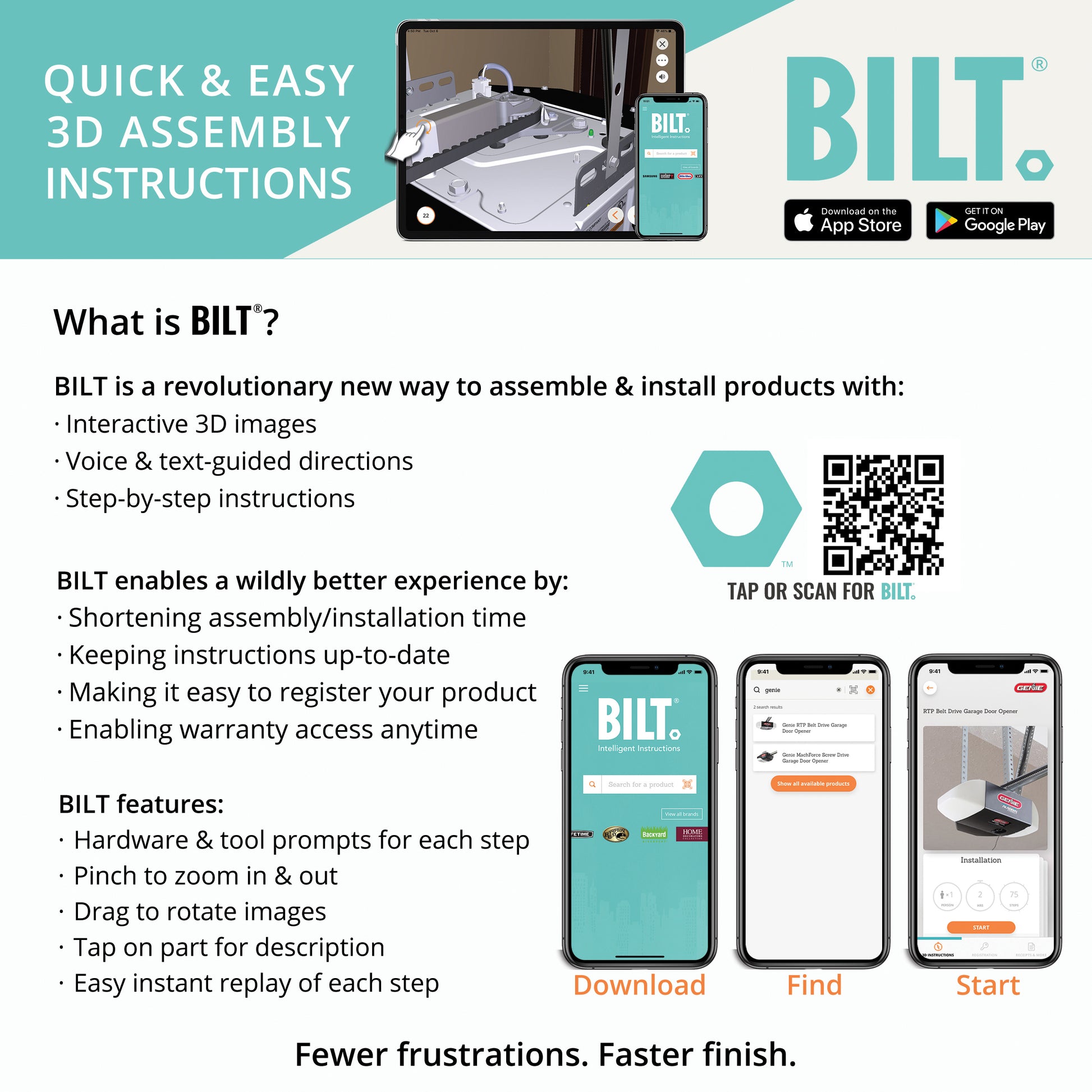 This Genie Screw Drive garage door opener Offers BILT® 3D Interactive Instructions to help with DIY installations. Available to download for free!