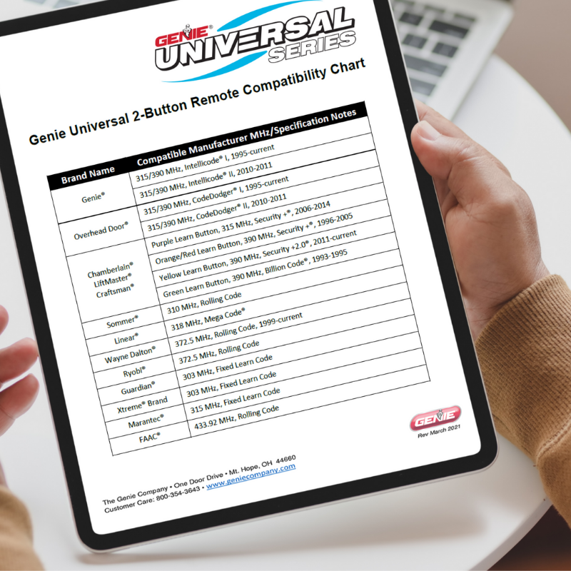 Genie Universal 2-Button Remote Compatibility Chart