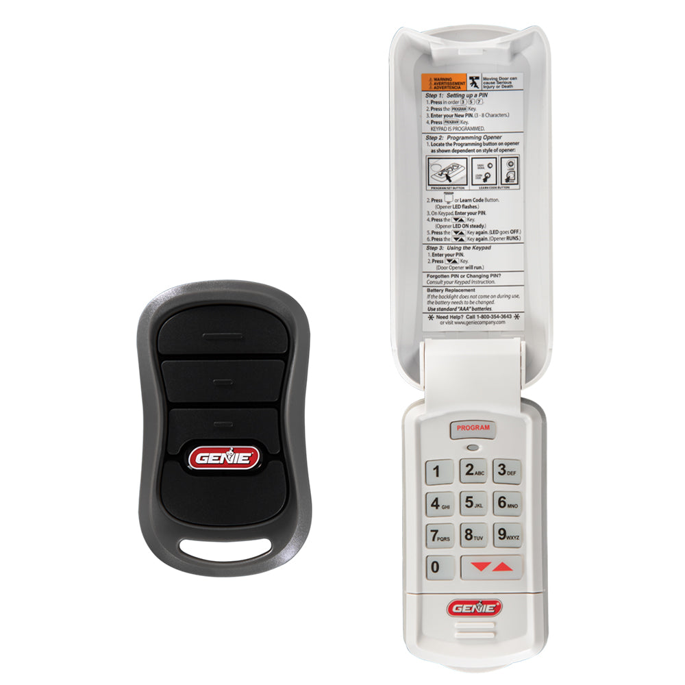 - With this bundle you will receive, 1 Keypad with 2 AAA batteries and mounting screws, 1 G3T-R remote with battery and visor clip, along with programming instructions.