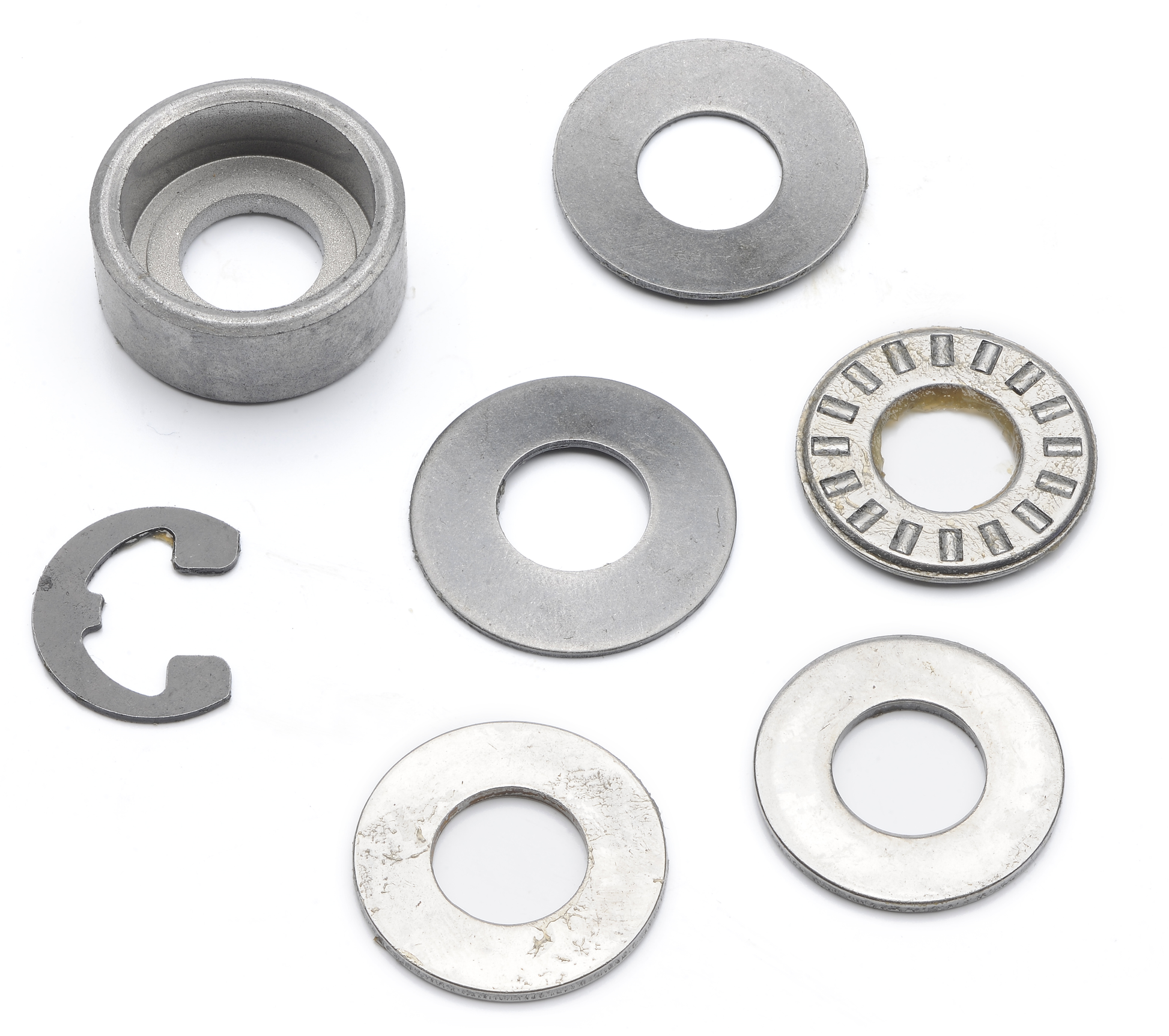- Install replacement washers, bearing, retaining cup, and e-ring in correct order. FIG 1